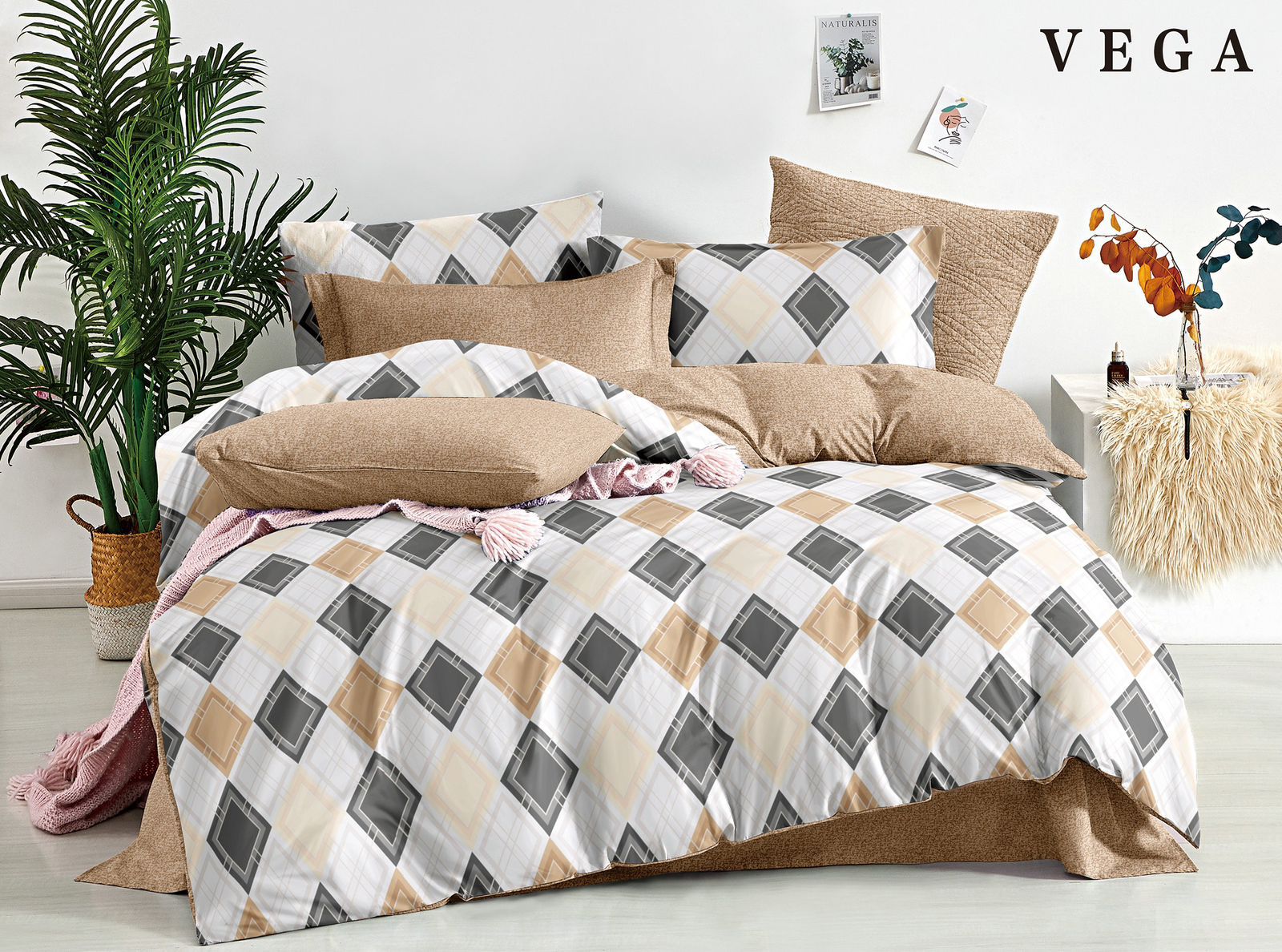 Комплекты постельного белья "Vega" / Размер Евро на резинке по кругу, коробка 32 расцветки
