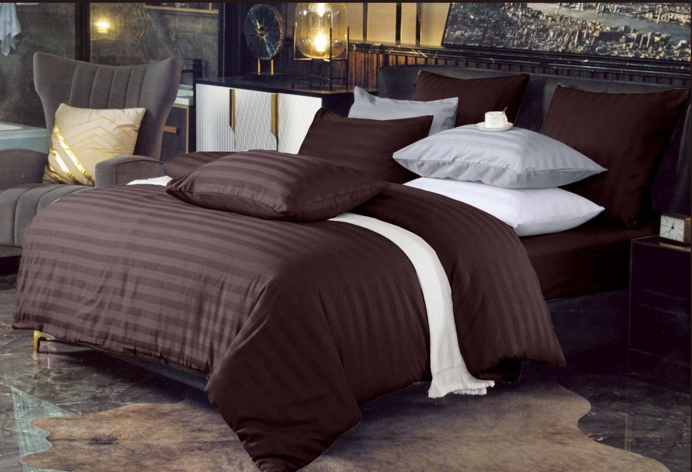 Комплекты постельного белья "Alana" страйп-сатин / Размер Двухспальный, коробка 36 расцветок