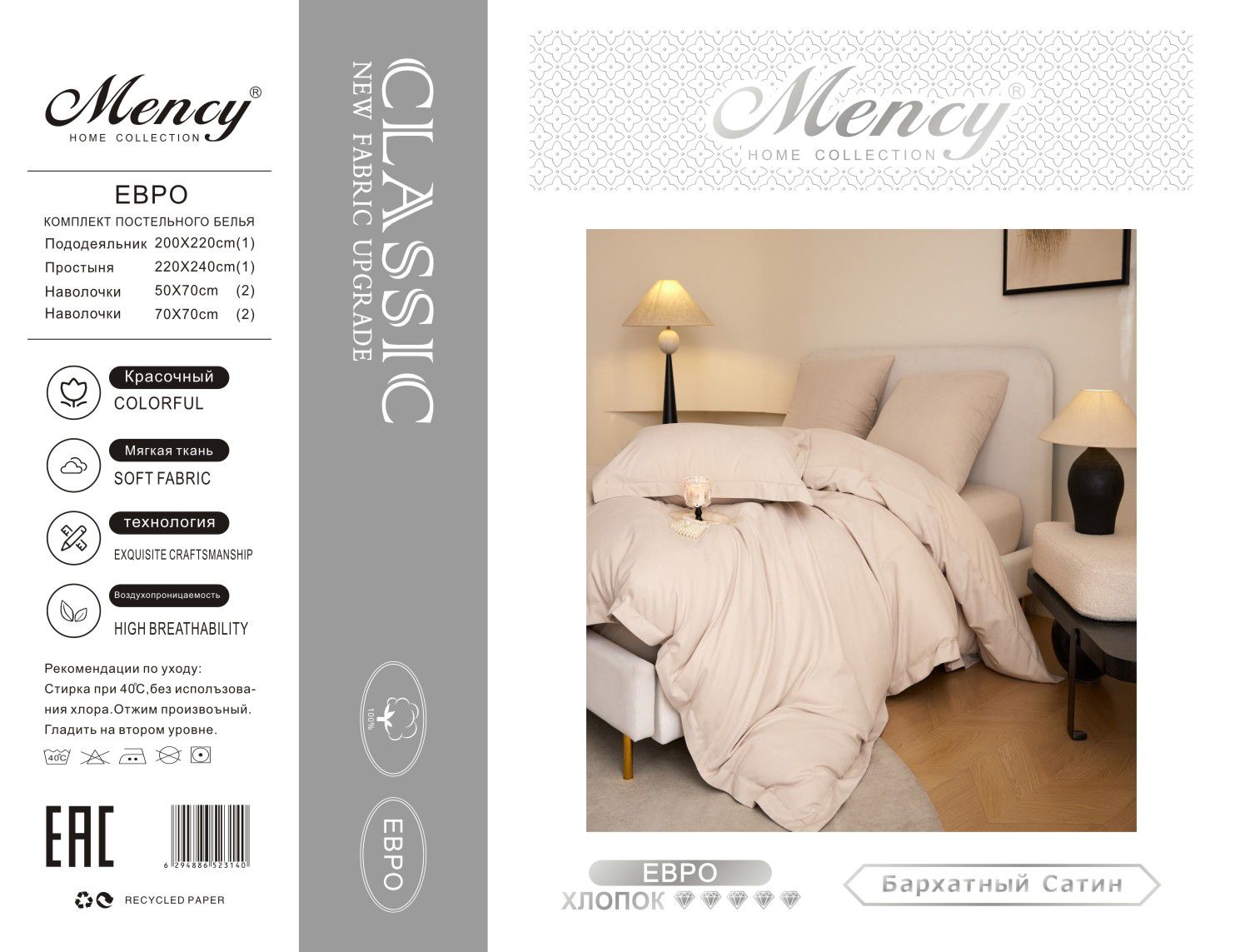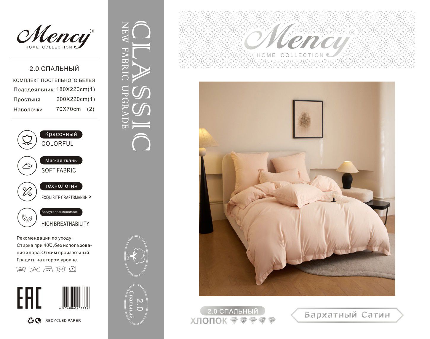 Коробка постельного белья "Mency" бархатный сатин. Размер Семейный / Коробка 20 комплектов — отзывы