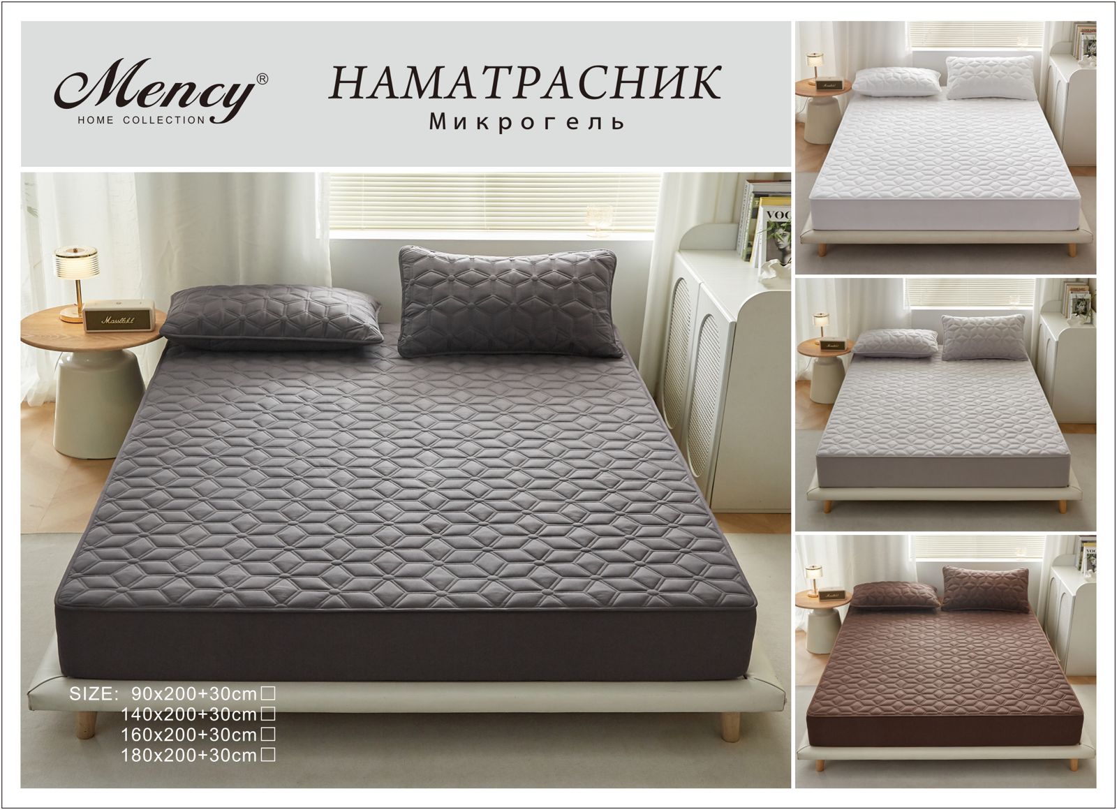 Наматрасники "Mency".Размер 160-200+30 см