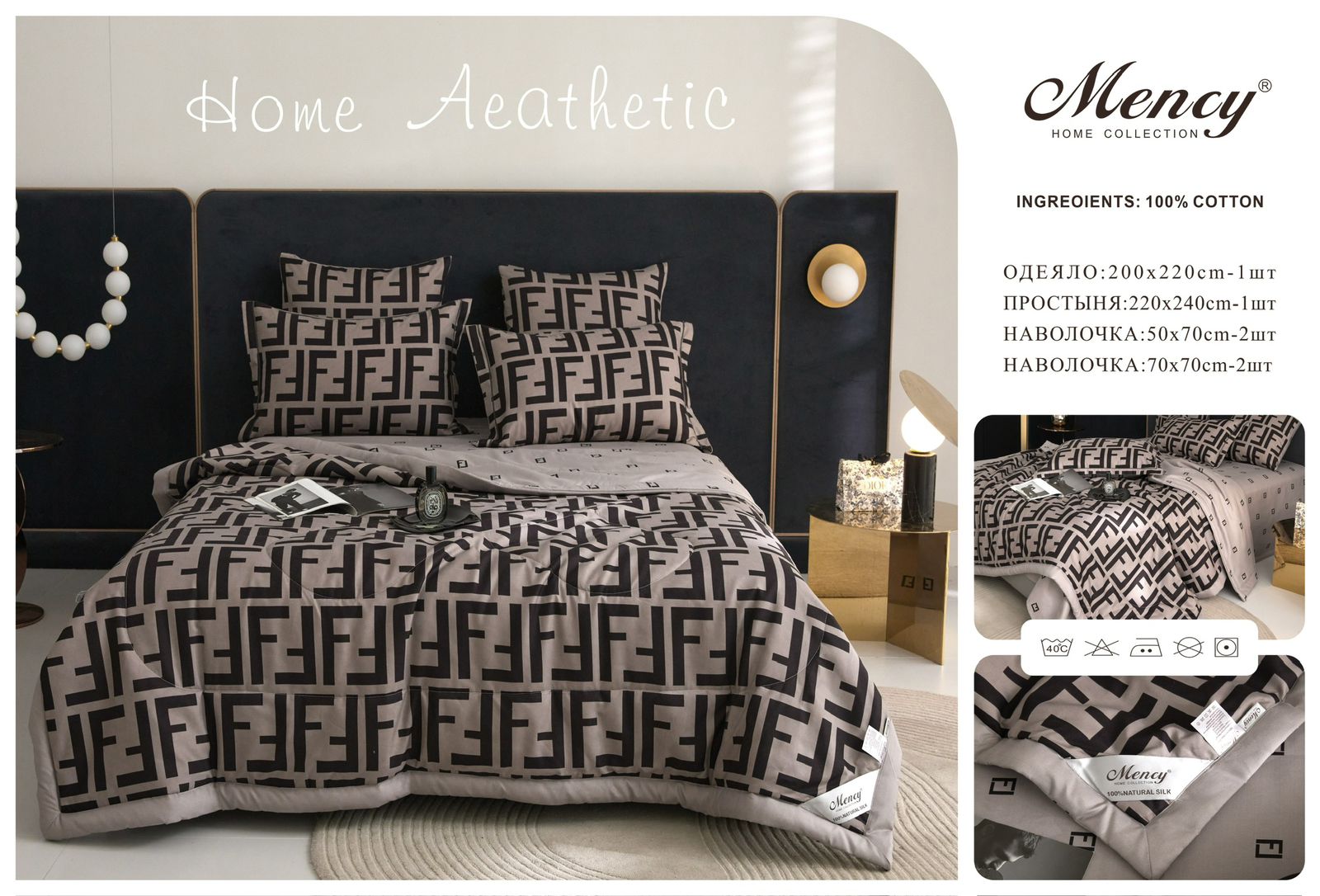 Комплект постельного белья с одеялом "Mency" / Размер Семейный/ Упаковка 12 расцветок