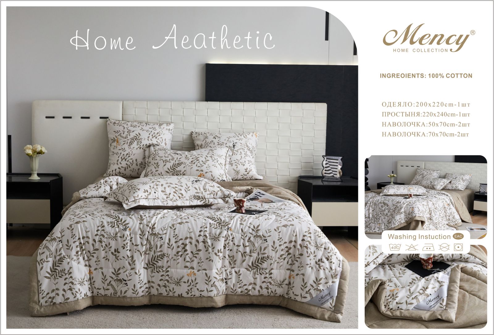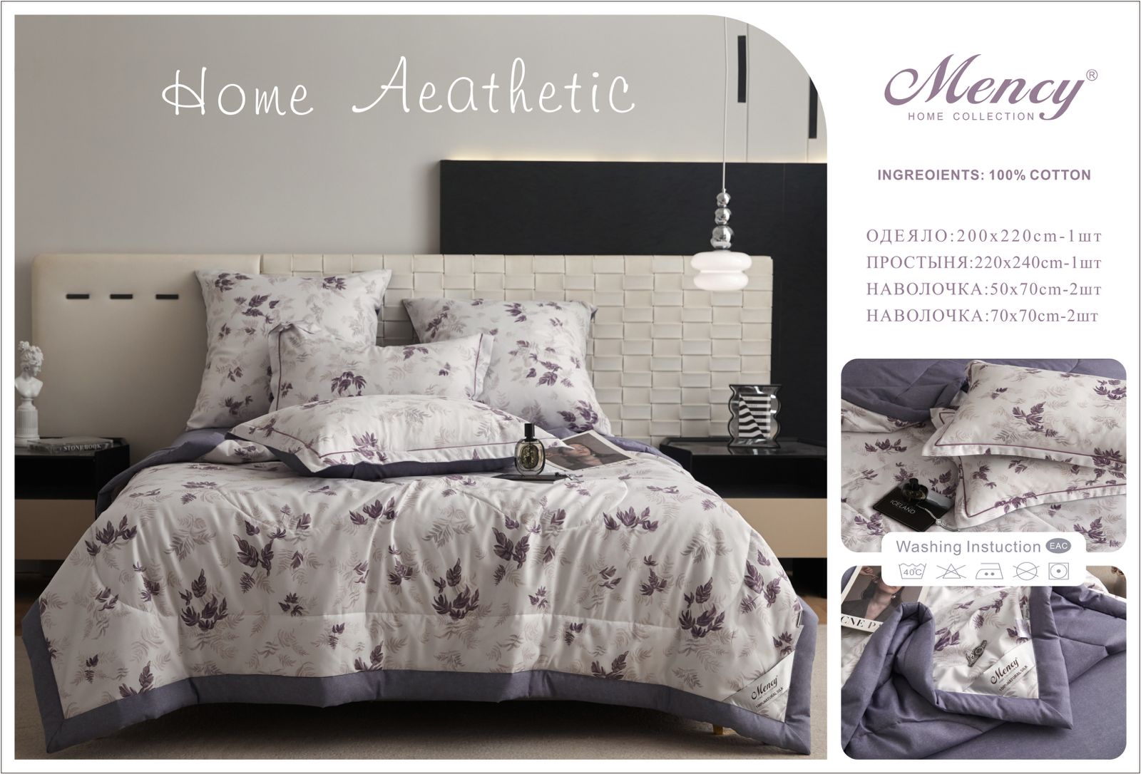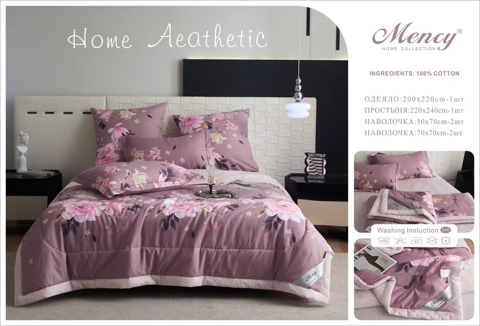 Комплект постельного белья с одеялом "Mency" / Размер Семейный/ Упаковка 12 расцветок — отзывы