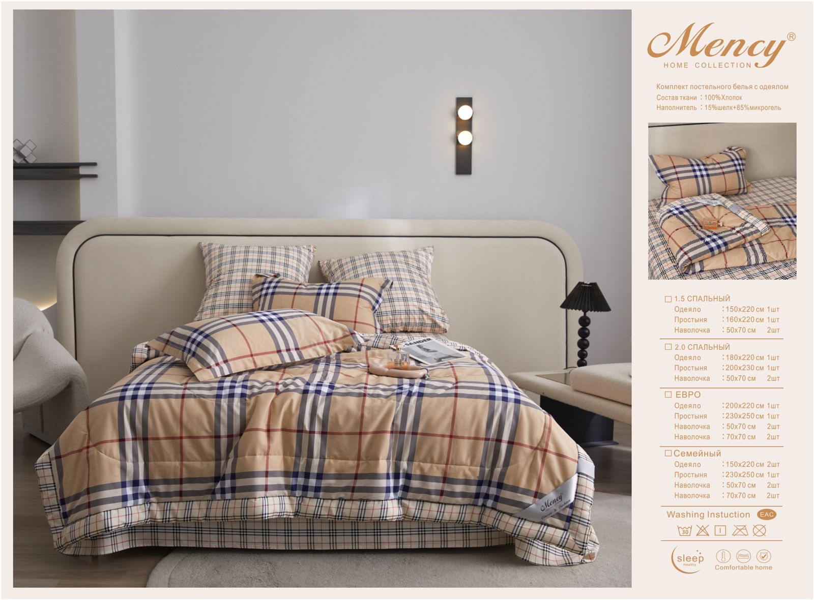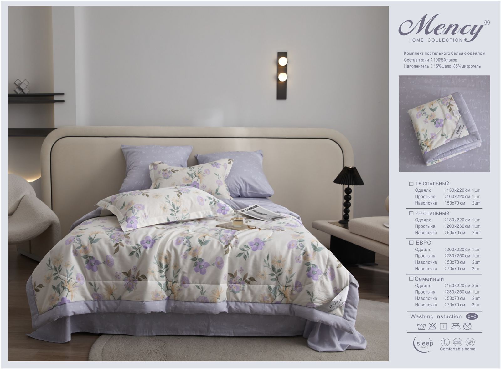 Комплект постельного белья с одеялом "Mency" / Размер Полуторка / Упаковка 16 расцветок — отзывы