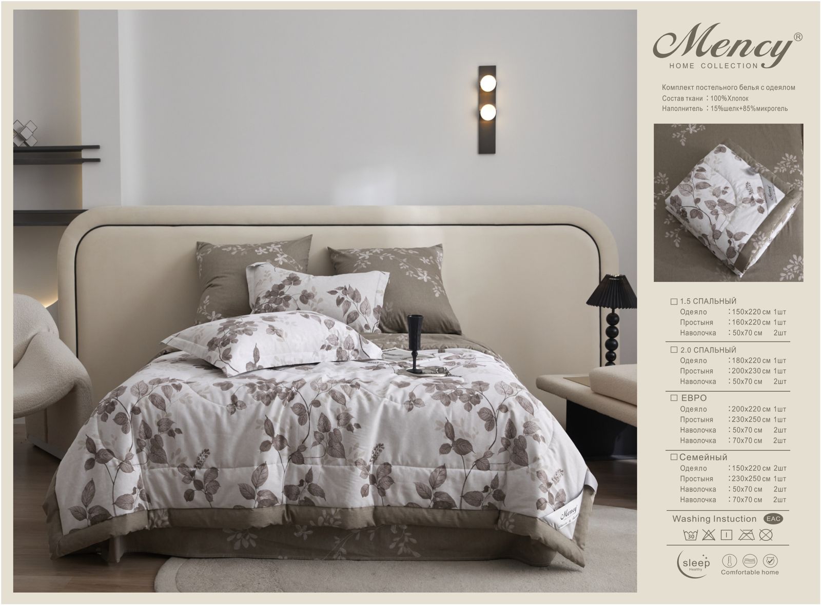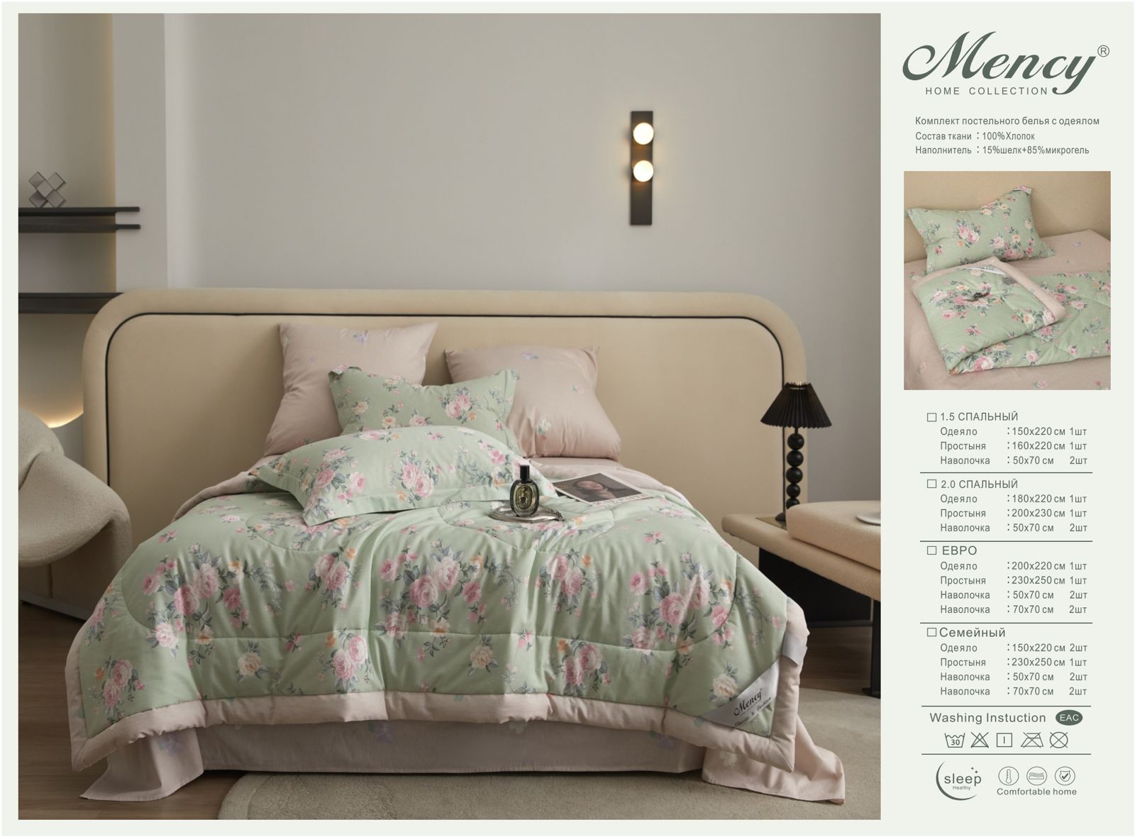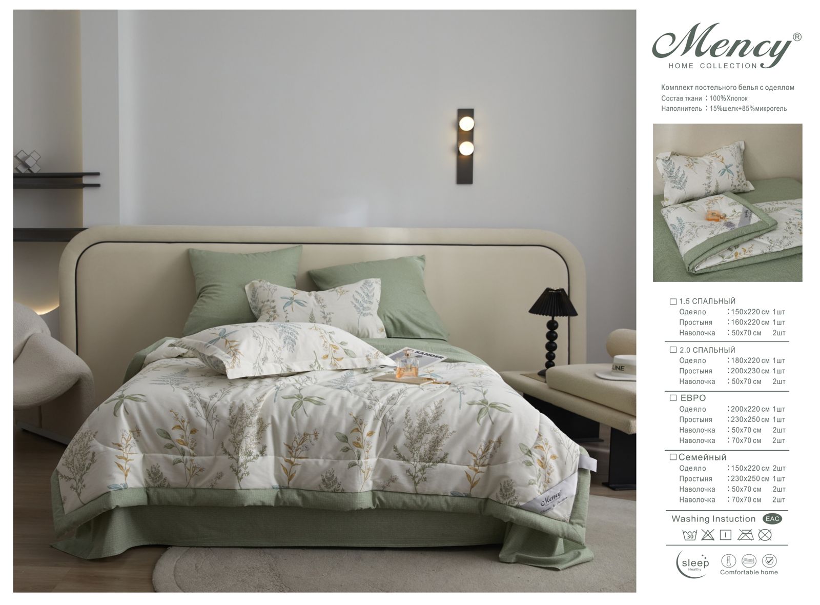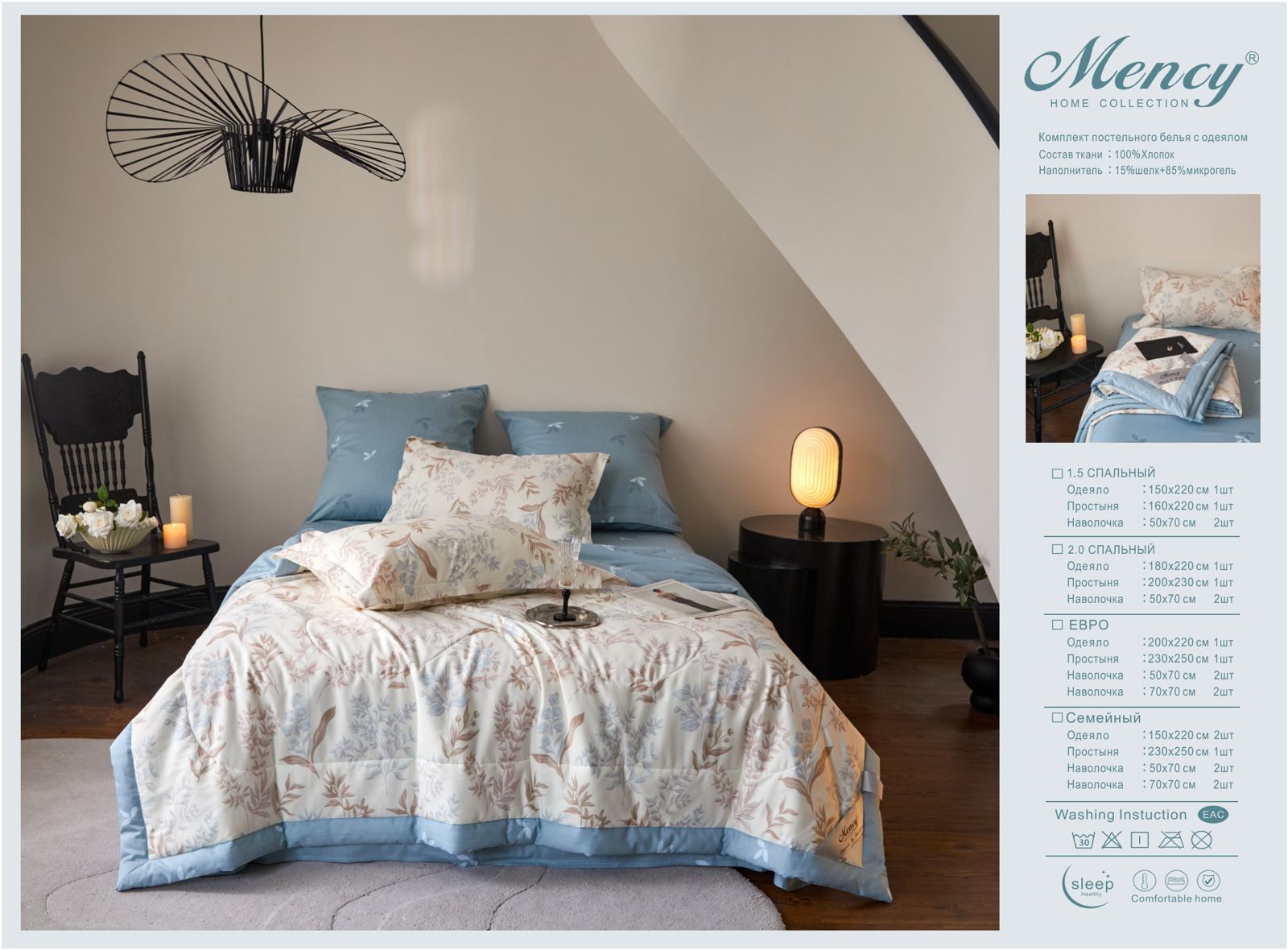 Комплект постельного белья с одеялом "Mency" / Размер Двухспальный / Упаковка 16 расцветок — отзывы
