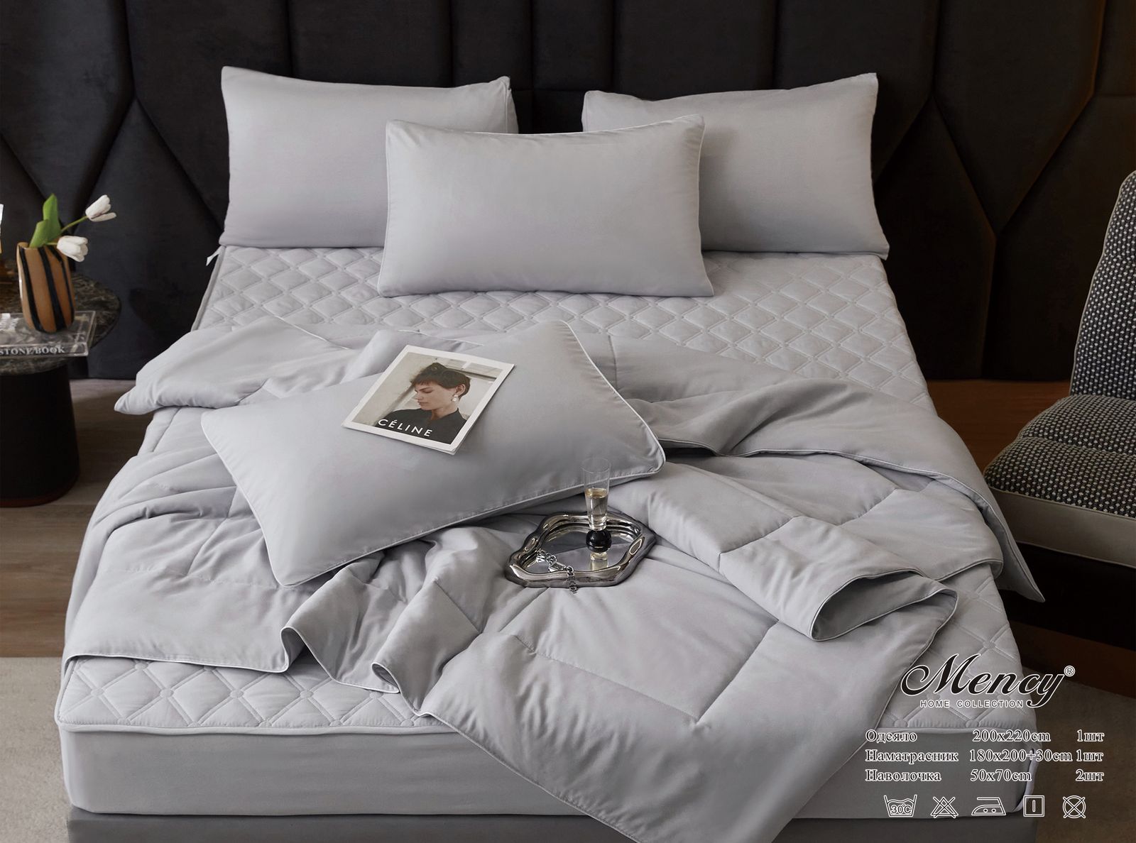 Комплект постельного белья "Mency" с одеялом и наматрасиком / Размер Евро / Упаковка 18 расцветок