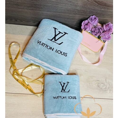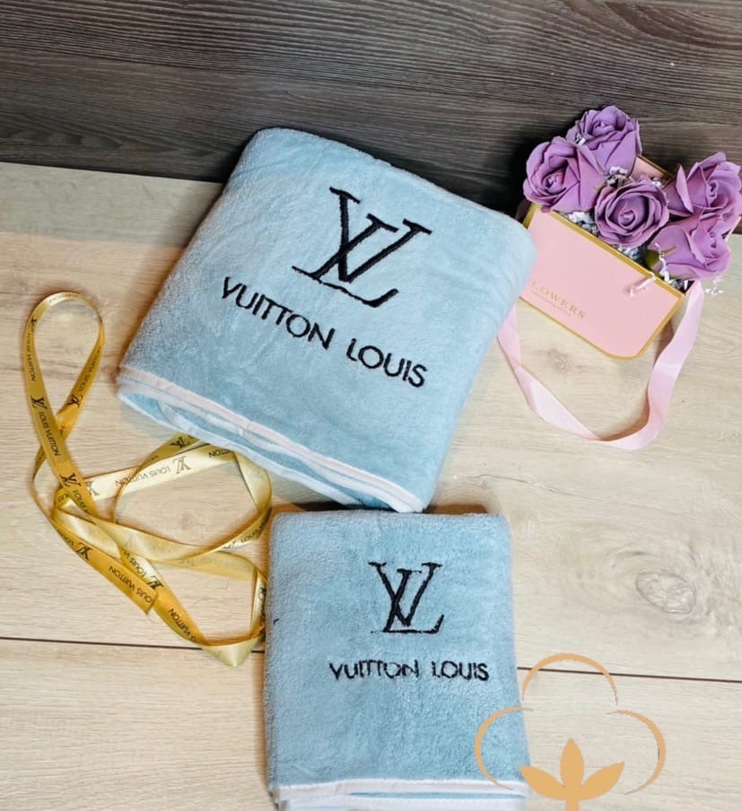 Брендовый комплект из двух полотенец в подарочной сумочке, микрофибра.