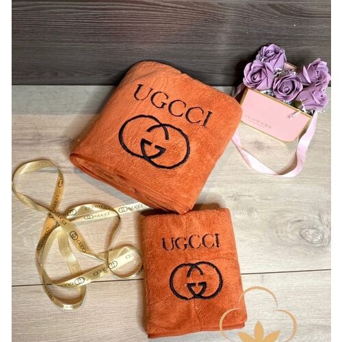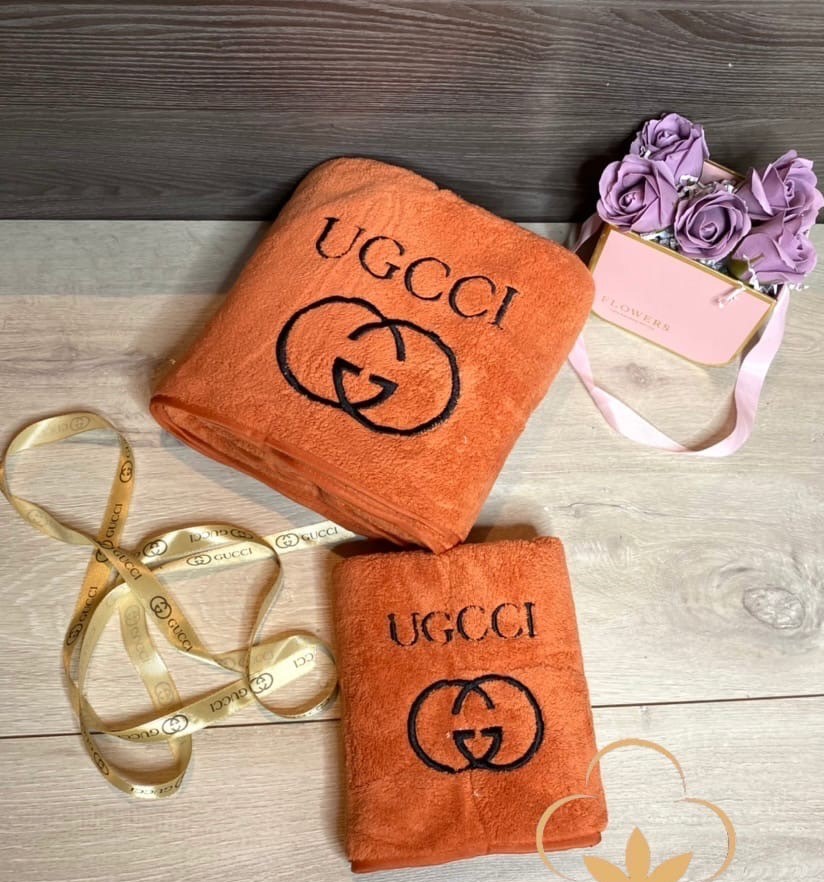 Брендовый комплект из двух полотенец в подарочной сумочке, микрофибра.