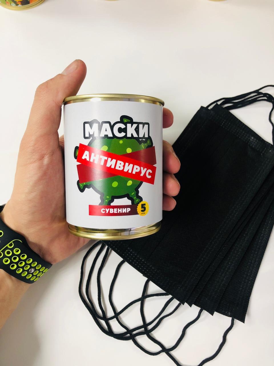 Маски в банке.5 штук.Без выбора рисунка банки!
