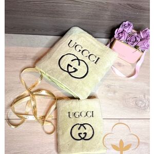 Брендовый комплект из двух полотенец в подарочной сумочке, микрофибра.(Арт. PS9909)
