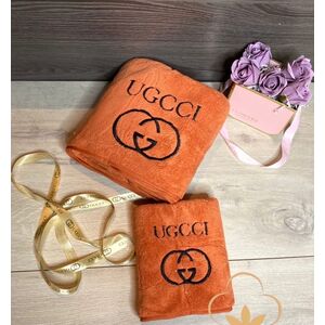 Брендовый комплект из двух полотенец в подарочной сумочке, микрофибра.(Арт. PS9904)