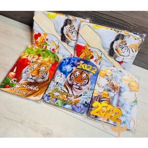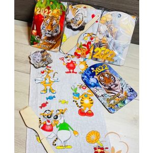 Подарочный кухонный набор. Набор состоит из 4 предметов, доска, полотенца, подставка под чайник и деревянная ложка.(Арт. PS9560)