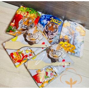 Подарочный кухонный набор. Набор состоит из 4 предметов, доска, полотенца, подставка под чайник и деревянная ложка.(Арт. PS9559)